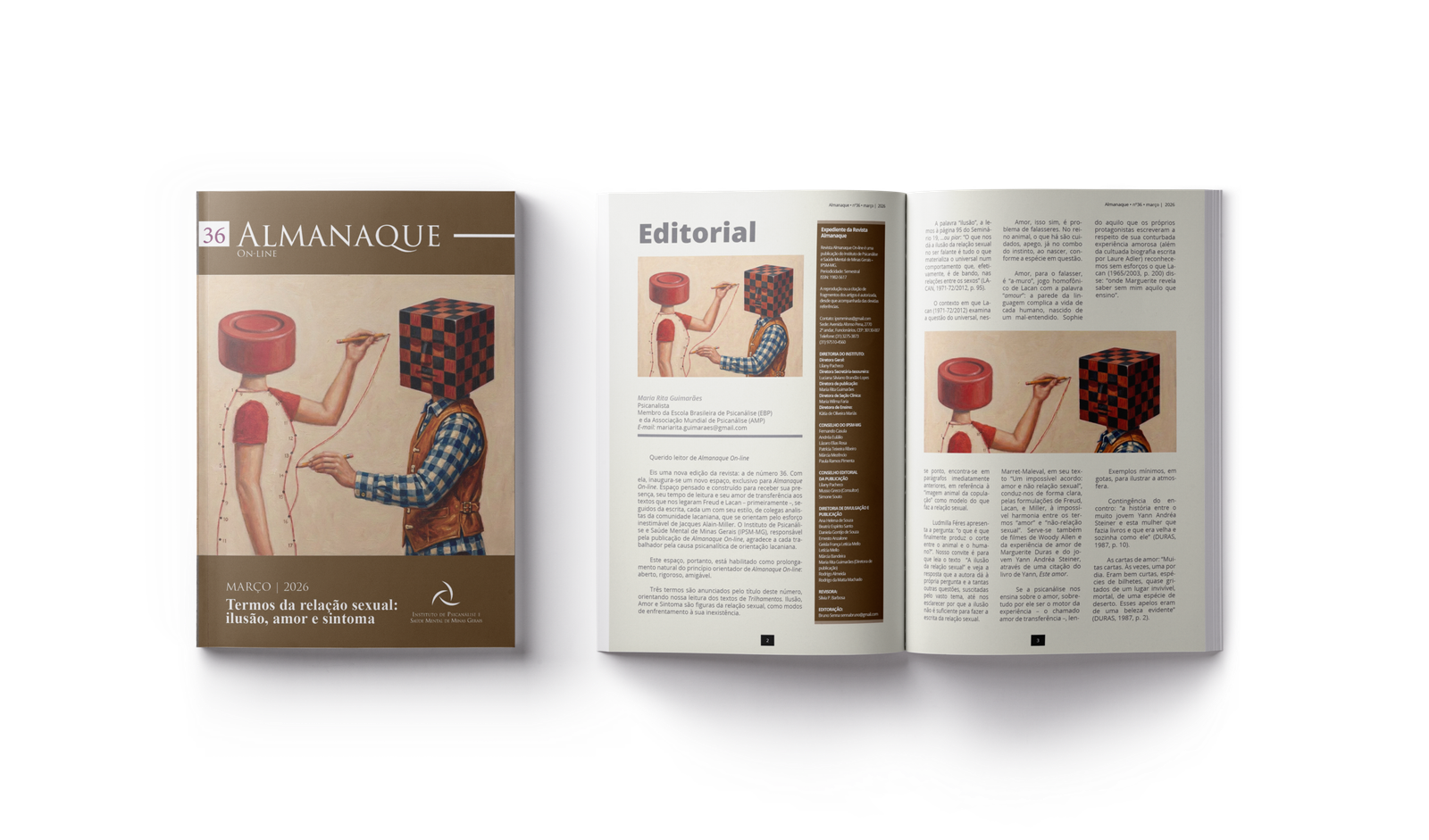 Eis uma nova edição da revista: a de número 36. Com ela, inaugura-se um novo espaço, exclusivo para Almanaque On-line. Espaço pensado e construído para receber sua presença, seu tempo de leitura e seu amor de transferência aos textos que nos legaram Freud e Lacan – primeiramente –, seguidos da escrita, cada um com seu estilo, de colegas analistas da comunidade lacaniana, que se orientam pelo esforço inestimável de Jacques Alain-Miller. O Instituto de Psicanálise e Saúde Mental de Minas Gerais (IPSM-MG), responsável pela publicação de Almanaque On-line, agradece a cada trabalhador pela causa psicanalítica de orientação lacaniana.